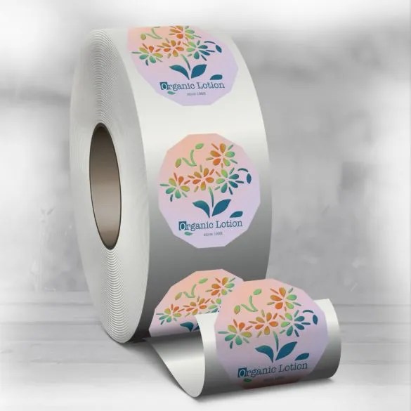 Custom roll labels have a permanent adhesive that sticks to many different surfaces. Ideally suited for content labels, print labels, packaging seals, and more.